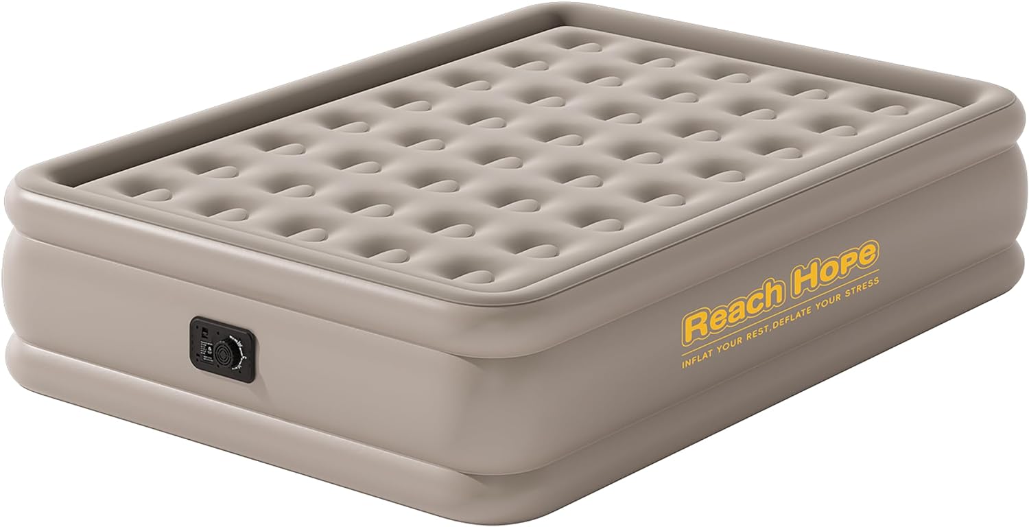 Air Mattress with Built-in Pump Coil Beam Comfortable Support Quick Self Inflatable All Night No Lost Air Bed for Camping, Home, Portable Travel