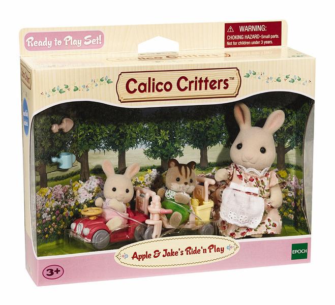 Apple & Jake's Ride 'n Play Join Bunny Gwyneth as she takes Apple and Jake to ride around Cloverleaf park in their new push car and tricycle! Includes Mother Bunny Gwyneth, Baby Bunny Apple, Baby Squirrel Jake, tricycle with basket & rotating wheels, car