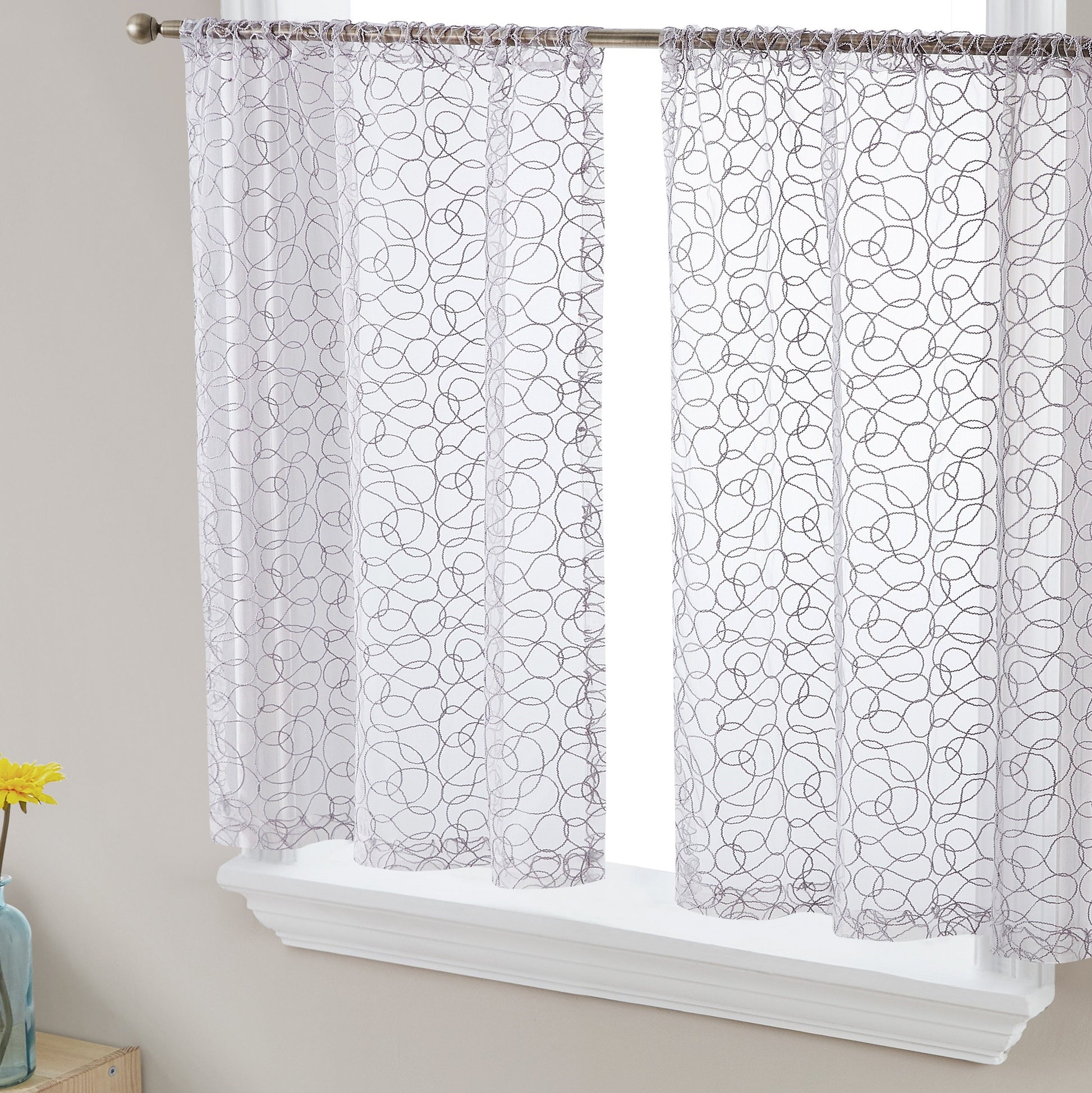 Hey there moms! We know, your kitchen is the heart of your homes and HLC.ME wants to dress up your bay windows, kitchen windows and even bathroom windows. Add a sophisticated and clean look to your windows with there abstract Audrey curtains. Sheer lace curtains will filter the morning sun light through your kitchen windows while brewing your morning coffee. Curtains are made out of 100% polyester. All kitchen curtain accessories are sold separately. Each package of tiers contains 2 panels, while each package of valances contains 1 panel/valance. Each tier measures 30 W x 24 L, 30 W x 36 L, 30 W x 45 L Inches per panel, depending on size selection, for a total width coverage of 60 inches; each valance measures 52" Wide x 18" Inch Length. Machine Washable.
