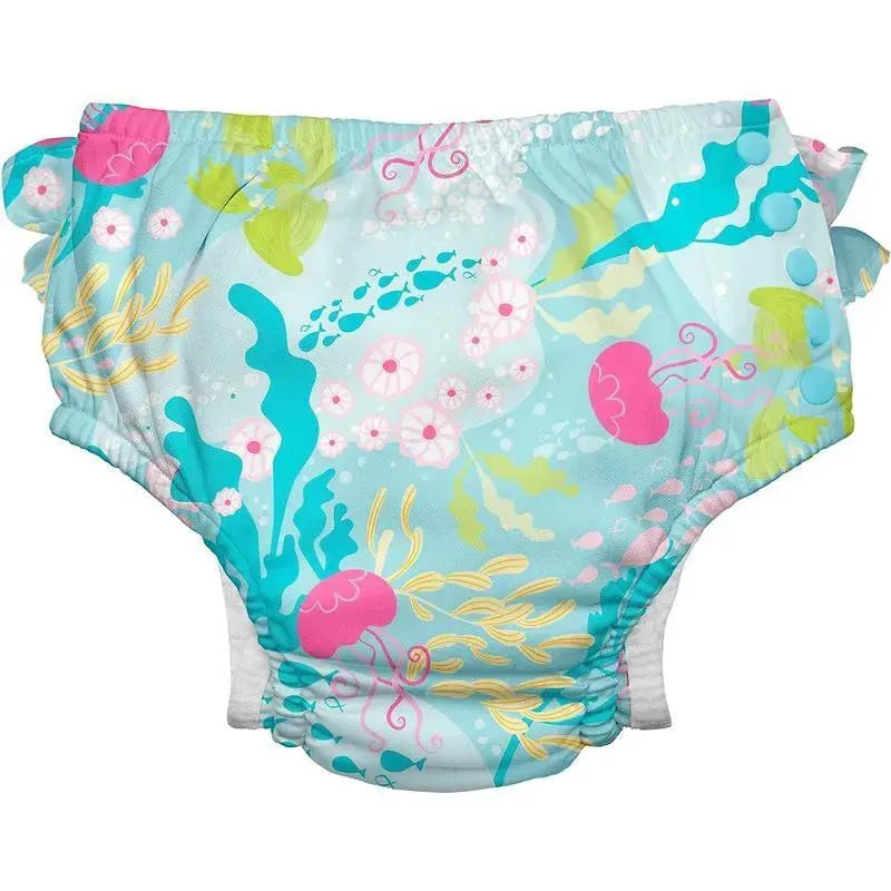 Green Sprouts - Reusable Eco Snap Ruffled Swim Diaper, Aqua Coral Reef