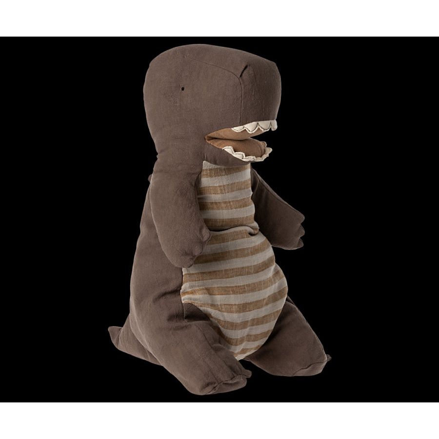 Look at this funny friend! A large gantosaurus with big teeth has arrived and is ready to play with all of us. It is made in a soft mix of ramie and cotton, the striped stomach is made in a very nice blend of linen and cotton.