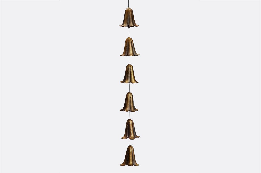 Hand cast aluminum, warm bronze finish. Measures 25" H 3" D. Height excludes top string length.
