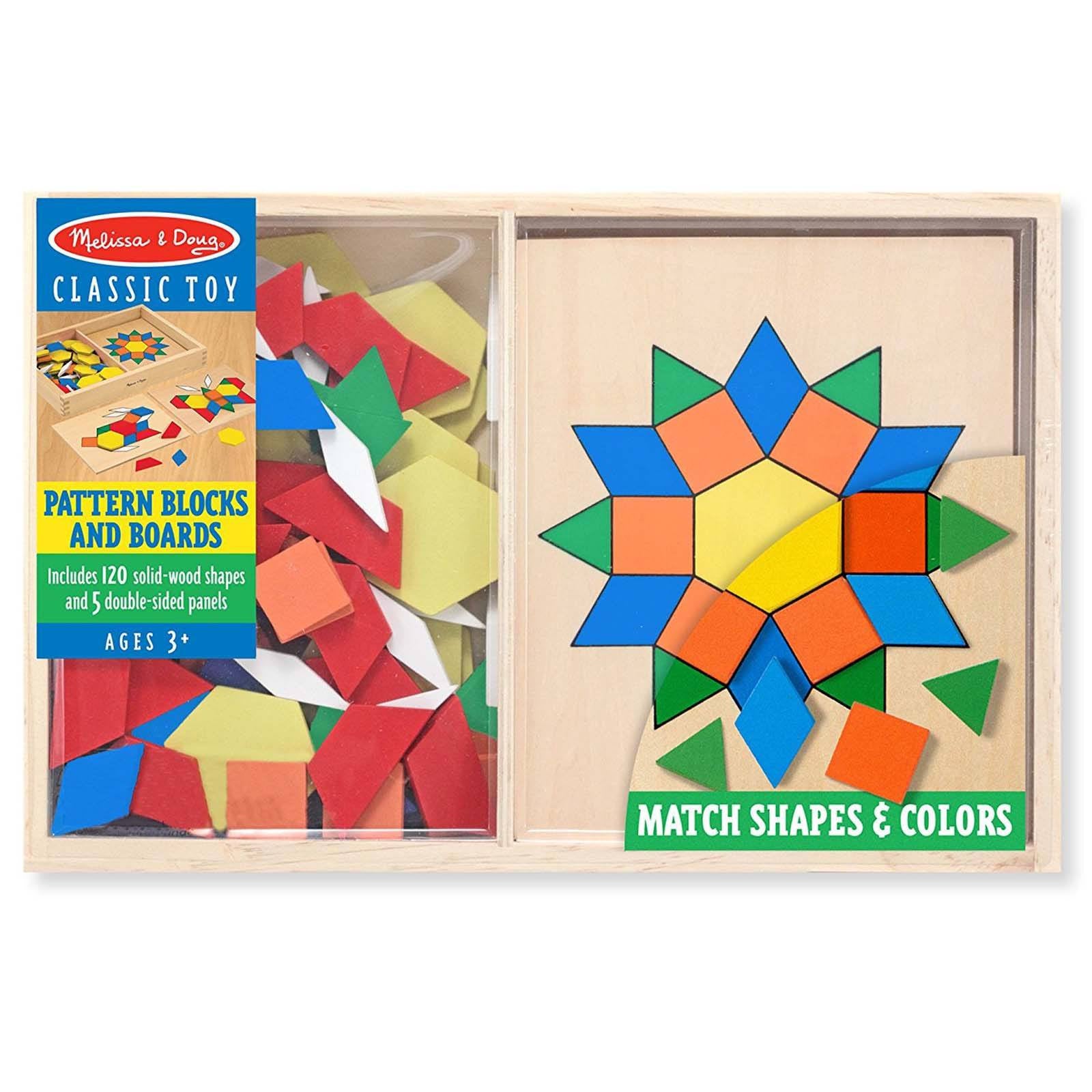 Melissa And Doug Wooden Classic Toy Pattern Blocks And Boards Set
