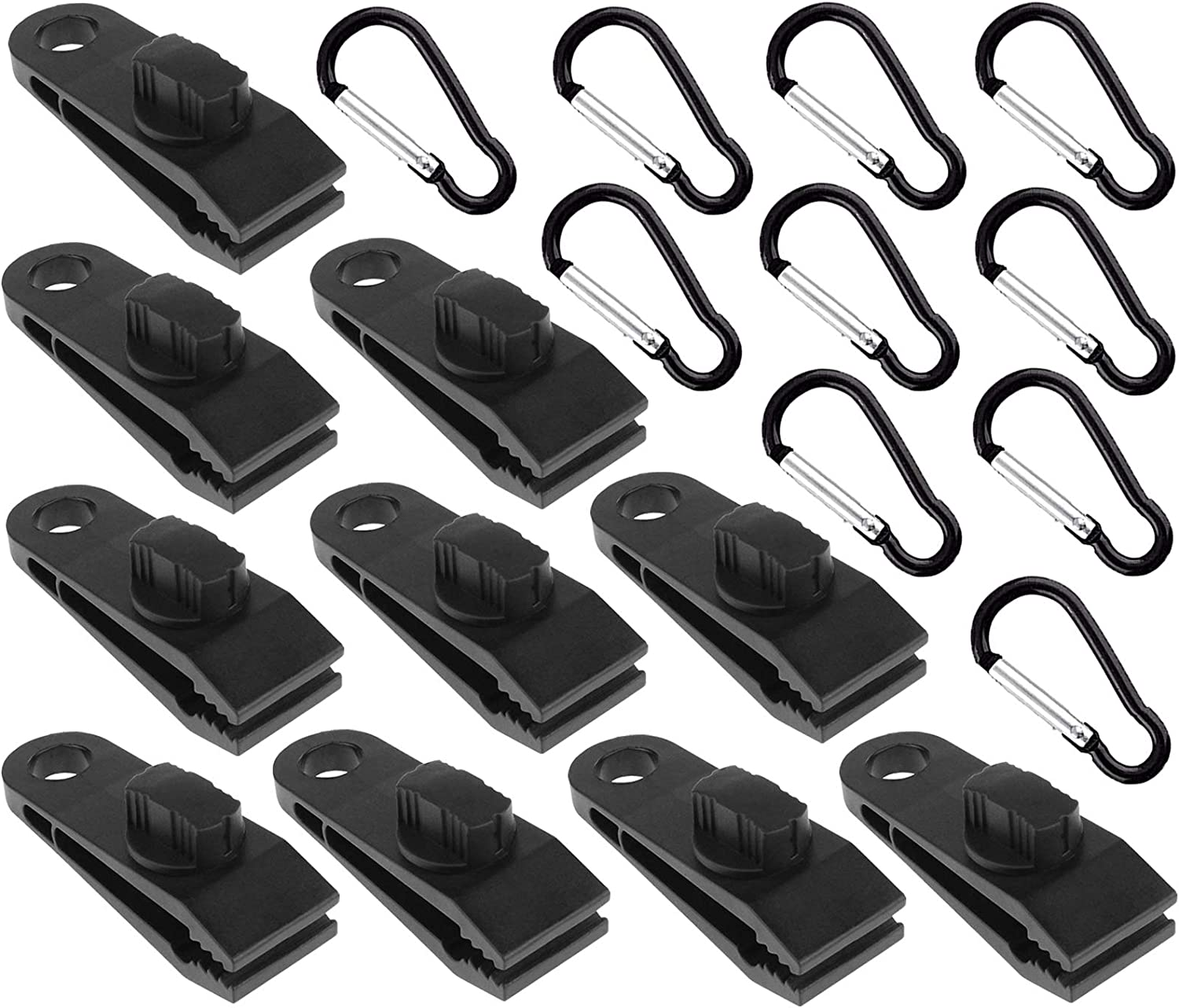 - 【Tarp Clips Application】Camp clamps are ideal for outdoor camping tents, awnings, caravans, tarpaulins, canvas, awnings, boat covers, swimming pool covers, temporary shelters or any fabric covering that requires additional support points.