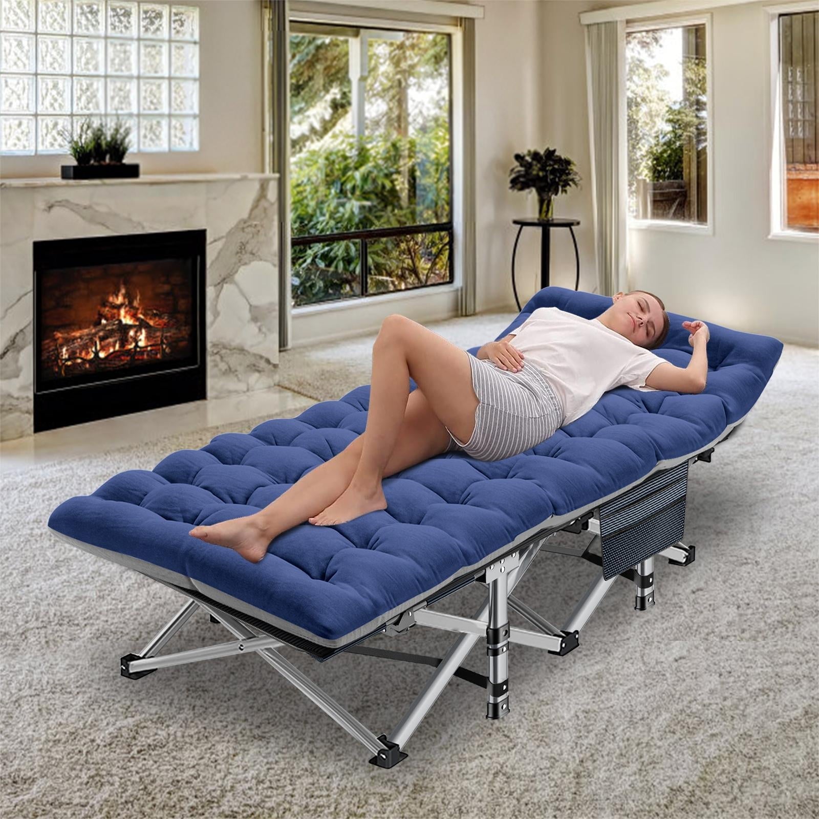 MOPHOTO folding camping cot has an excellent design, and its 10 feet can better support the weight of 880 pounds without rocking from side to side. Detachable cotton pads, summer or winter, outdoor or indoor, folding beds can be easily fitted. This camping cot is constructed in a double layer of 1200d oxford for superior strength, water resistance, and easy cleaning making it more durable, and can last a long time. You can take it with you wherever you want. MOPHOTO folding camping cot with carrying bag can be widely used not only as camping, patio, and pool furniture for sunbathing at the park or your backyard but also indoor bedrooms, living rooms, offices, and any places you need to sleep. Strong Frame: The sleeping cots for adults with square high strength steel tubes frame are designed to fully support you and allow you to relax comfortably weight 7.5 kg/16.5 lbs support up to 880 lbs. Can bear 1 adult or 2 children sleeping on it to rest. Premium Fabric: This camping cot is constructed in a double layer of 1200d oxford for superior strength, water resistance, and easy- cleaning' makes it more durable, and can last a long time. MOPHOTO Portable Folding Cot: Strong, durable steel tube frame and joints fold up in seconds for effortless storage and travel fold up to fit inside most car trunks. Storage bag included for easy transport and storage. Easy to Setup: No assembly required, incredibly quick and easy to set up. Easily fold up the small camping cot within 10 seconds and store it in a carrying bag. Fold up to fit inside most car trunks. Portable Size: Compact, incredibly quick, and easy to set up. Widely Used: This cot bed is not only as camping, patio, and pool furniture but also in beauty salons and reflexology offices. The portable cot is perfect to be used at the park, beach, backyard, garden, campsite, or other outdoor places.