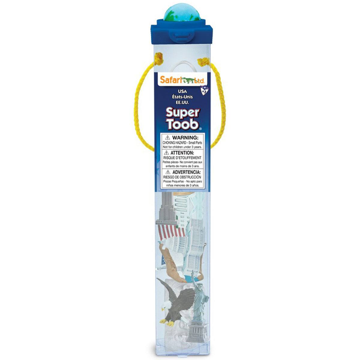 Let your child explore the United States of America in miniature size! This new Safari Ltd Super TOOB features icons, like the bald eagle and Liberty Bell, that define American history.It's nice to see that companies like Safari Ltd. making such cool toys.