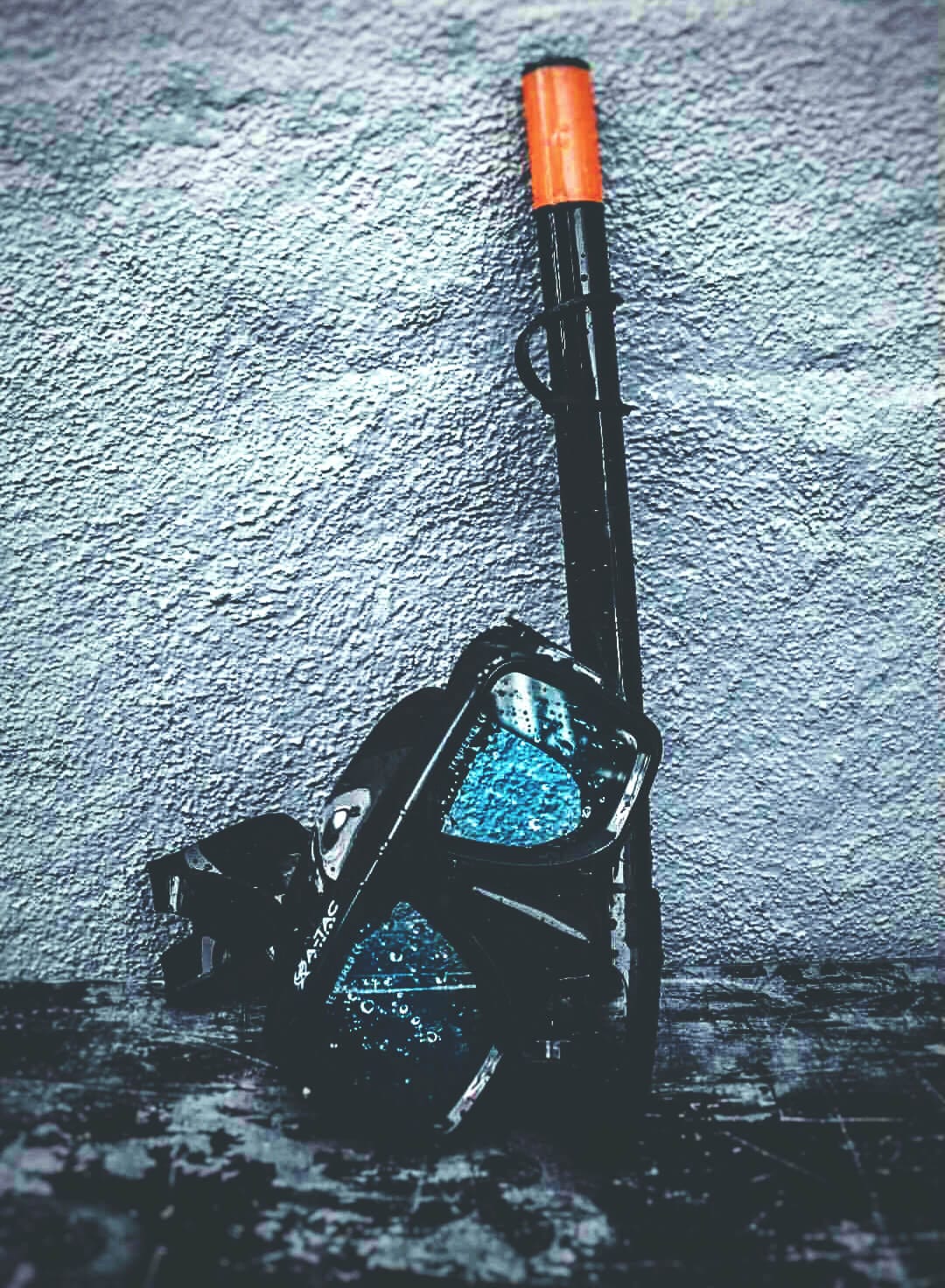 - Traditional adult snorkel designed for scuba diving and snorkeling