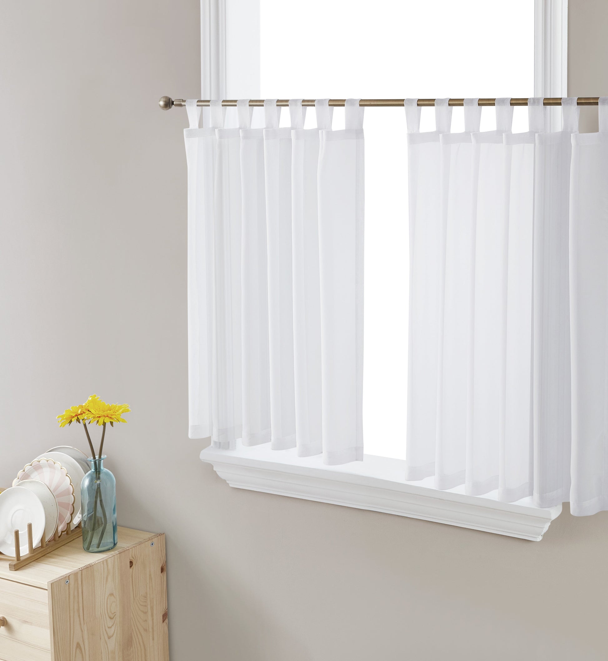 Sheer voile curtains give a light, romantic and airy look to a room by allowing sunlight to pass through the curtains. The fabric of voile curtains makes a unique window treatment that allows you to see outside but still allowing for privacy. For most home owners this is a great feature of sheer voile tier curtains. Light weight sheer voile curtains are a very effective decorating tool. Because of the lightness to the fabric allow light to enter the room while still providing privacy. They can be used for in many other ways as well. One of the great qualities to sheer voile curtains is they they come in a wide variety of colors and are generally inexpensive. This allows your to use them in every room of the house without breaking your budget. Sheer curtains are very easy to install and make them a great addition to any room as you can create a designer look with little effort. Each curtain panel can fit a curtain rod up to 1. 5 inch. Fiber Content: 100% Polyester. Package contains two (2) voile sheer window curtain panels. Care Instructions: Machine wash cold, Gentle Cycle. Use only non-chlorine. Bleach as needed. Tumble Dry Low. Iron on lowest setting as needed.